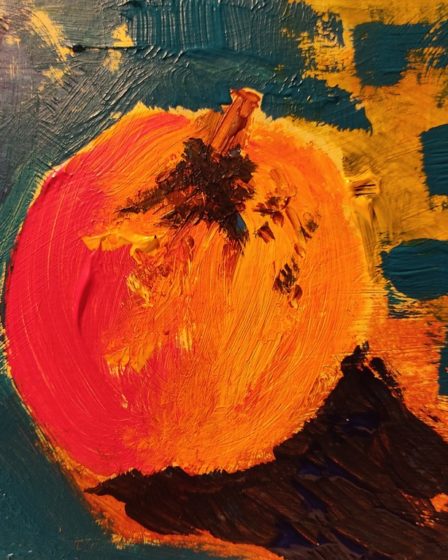 Voilà l’automne ! En cadeau, une belle pomme, une reine des reinettes de par chez nous.